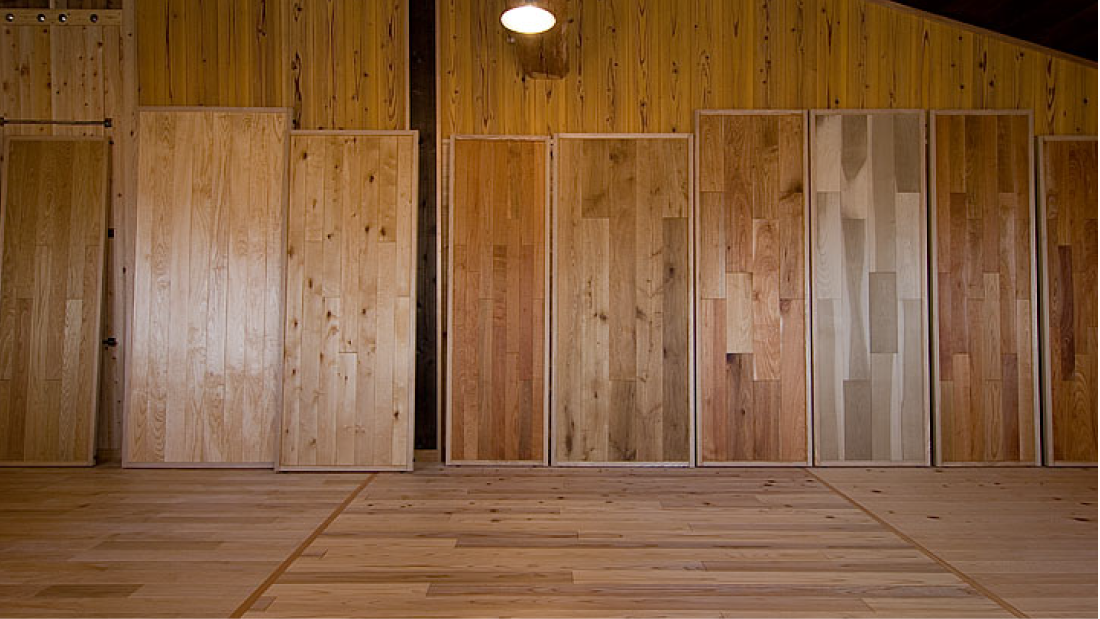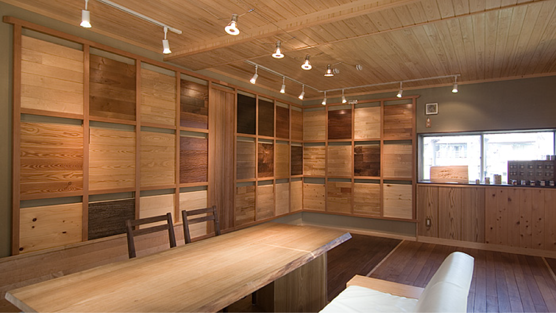 無垢フローリング・無垢羽目板・カウンター材などを実際にご覧いだだけるショールームをご用意しております。また、国産材に絞った展示コーナーもございます。写真だけではわからない手触り、踏み心地、香り、硬さを実際にお確かめ下さい。