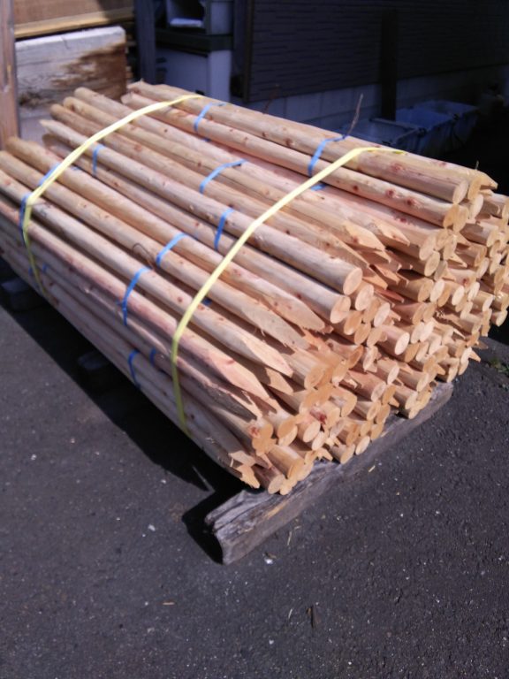 木杭 2021.07.01 木曜です。河内です。 これから一週間は梅雨らしい天気になりそうです。 あまりシトシト降っている様子は無いように思いますね 画像は役所に納めている木杭です。 先月の中頃に入荷しました。 これから1カ月は入荷出来ないそうで 無いと困るので200本入れました。 次の発注で単価が上がるのかな ウッドショックまだまだ続くのか それでは今週も張り切って行きましょう