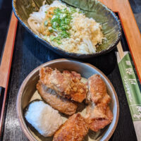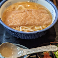 今回はからあげ、コロッケ、おいなりさんのついたうどんと、きつねうどん