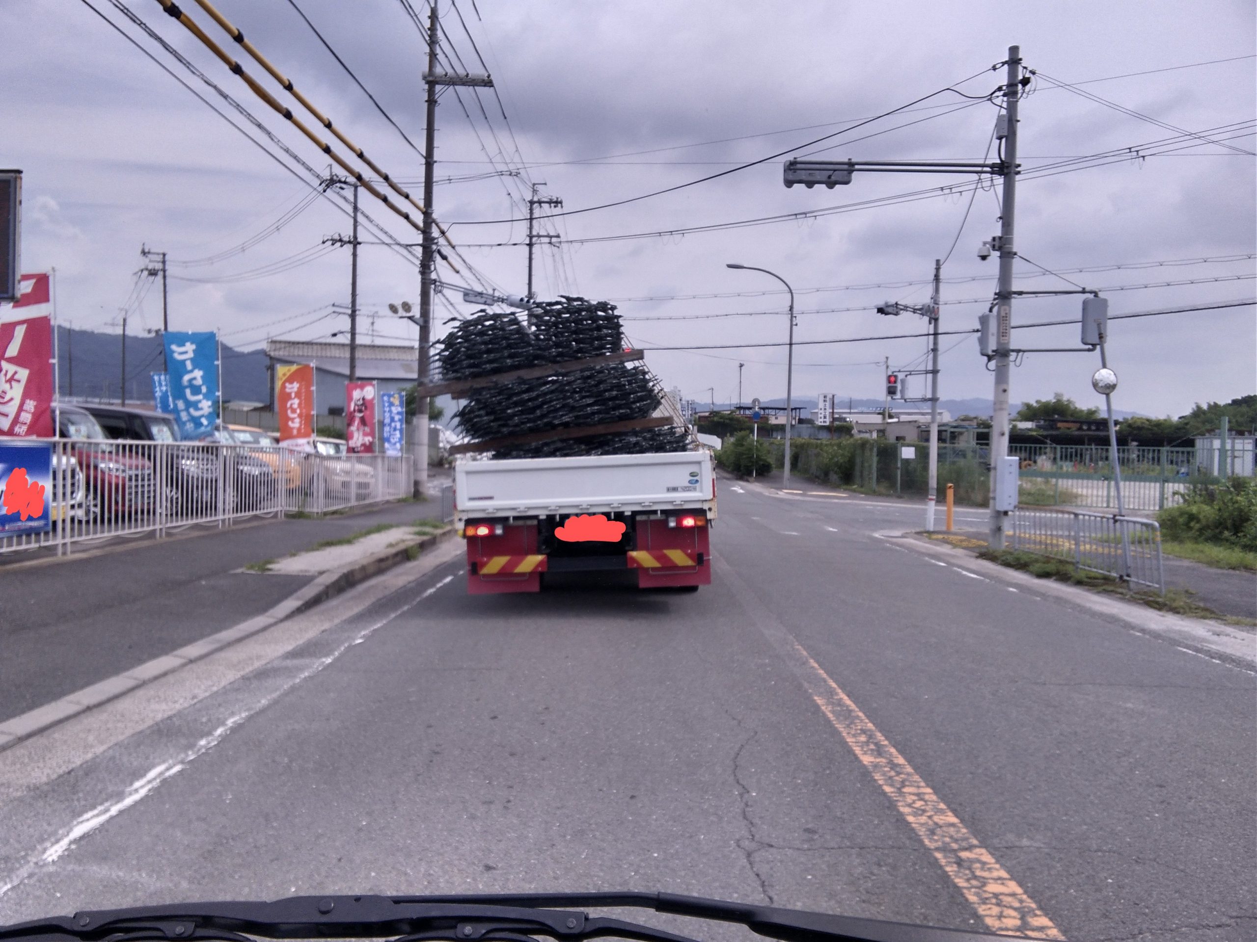 荷崩れ注意 2022.08.25 スタッフ日誌 木曜です。河内です。 まだまだ暑い日が続きますので水分補給を忘れずに・・・ 先日に続き荷崩れしそうなトラックです。 怖いです。怖いので車間距離は多めにとっています。 右折したらアウトでしょうね 荷物の積み方には気を付けましょう 落下物は落し主の責任です それでは今週も張り切って行きましょう