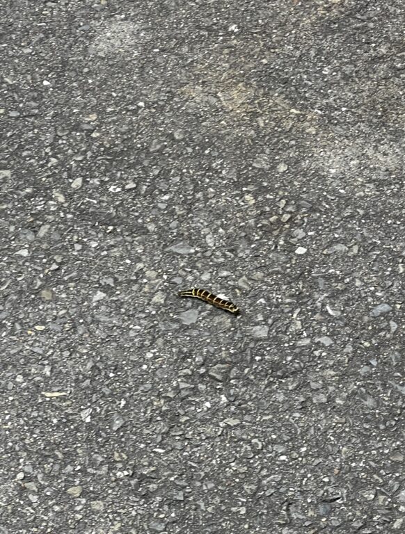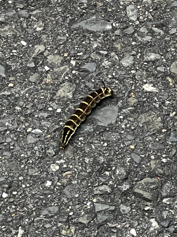 移動中🐛 2025.09.24 スタッフ日誌 クロアゲハチョウ🐦⬛の幼虫🐛です。 よく作業場の裏の木で見かけますが フォークリフトで荷物の整理中に 作業場ど真ん中で立ち止まっていました。 気にかけながら仕事しました。
