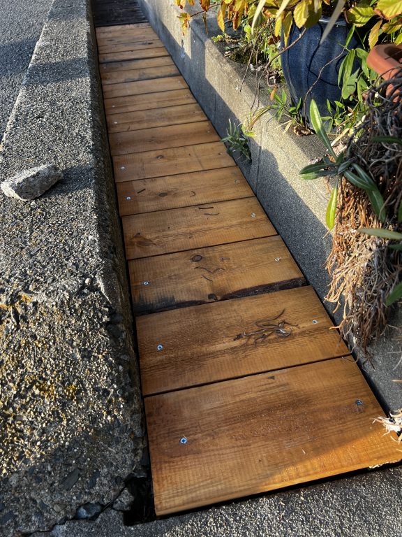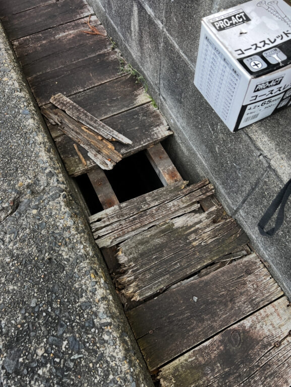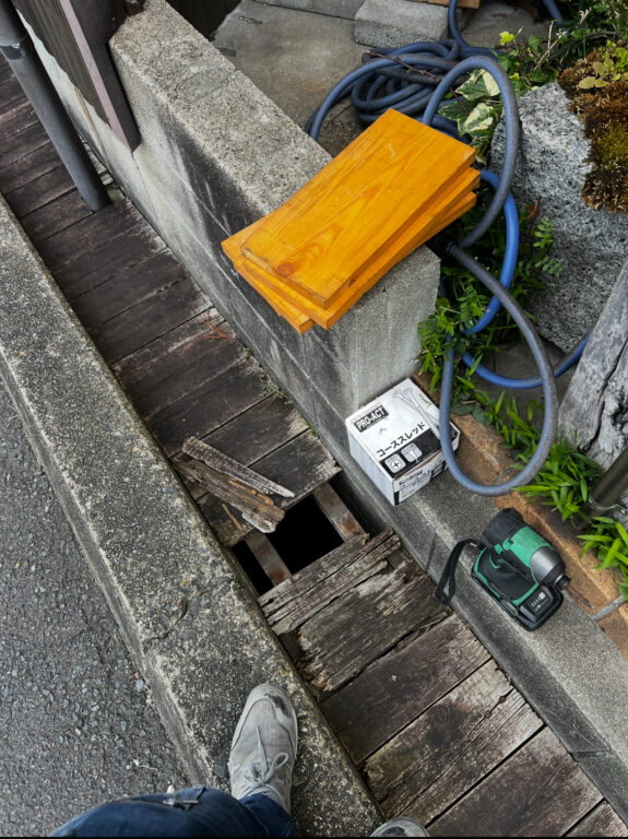 FIX 修理 溝 2025.04.09 スタッフ日誌 スタジオ横の溝用すのこが劣化してしまい ボロボロになっているので Fixしました。 新しい板に防腐剤を2度塗り 作業開始! あっという間に(30分くらいかかりました) 完全👍 まだ春だというのに汗かきながら💦 作業しました。