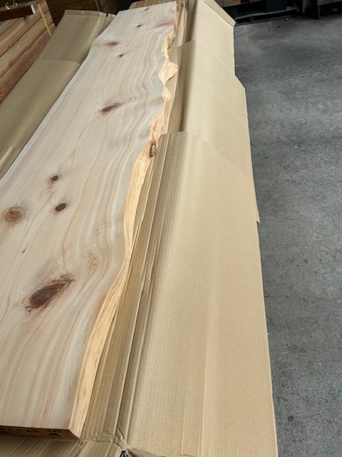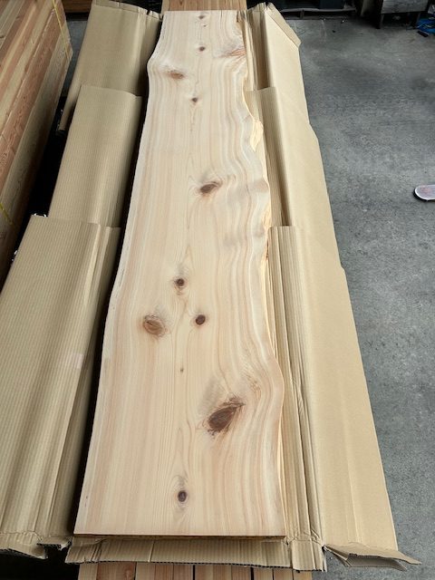 桧 カウンター 2025.06.17 木材のこと 火曜です。河内です。 梅雨明けですか?って言うくらい天気が良いです。 良すぎて猛暑日一歩手前になっています。 全国的に気温が高いので熱中症には気を付けましょう! 先日、桧 カウンターを決めていただきました。 化粧加工前の画像です。 化粧加工すると表面がこんなにもキレイになります。 耳付き板なので耳の部分も掃除しました。 御採用ありがとうございます。 幅広板の表面化粧加工等も受け付けています。 お気軽にHPよりお問い合わせ下さい。 それでは今週も張り切って行きましょう
