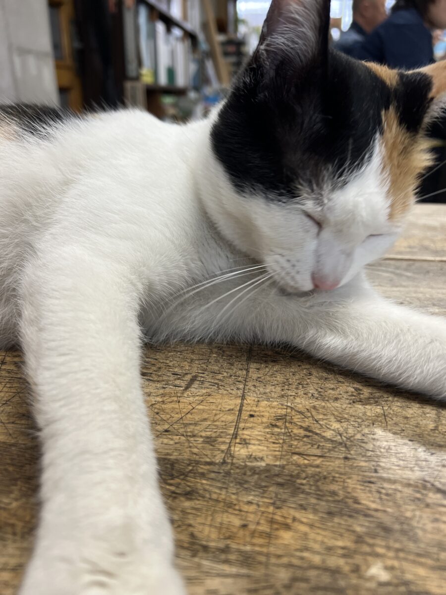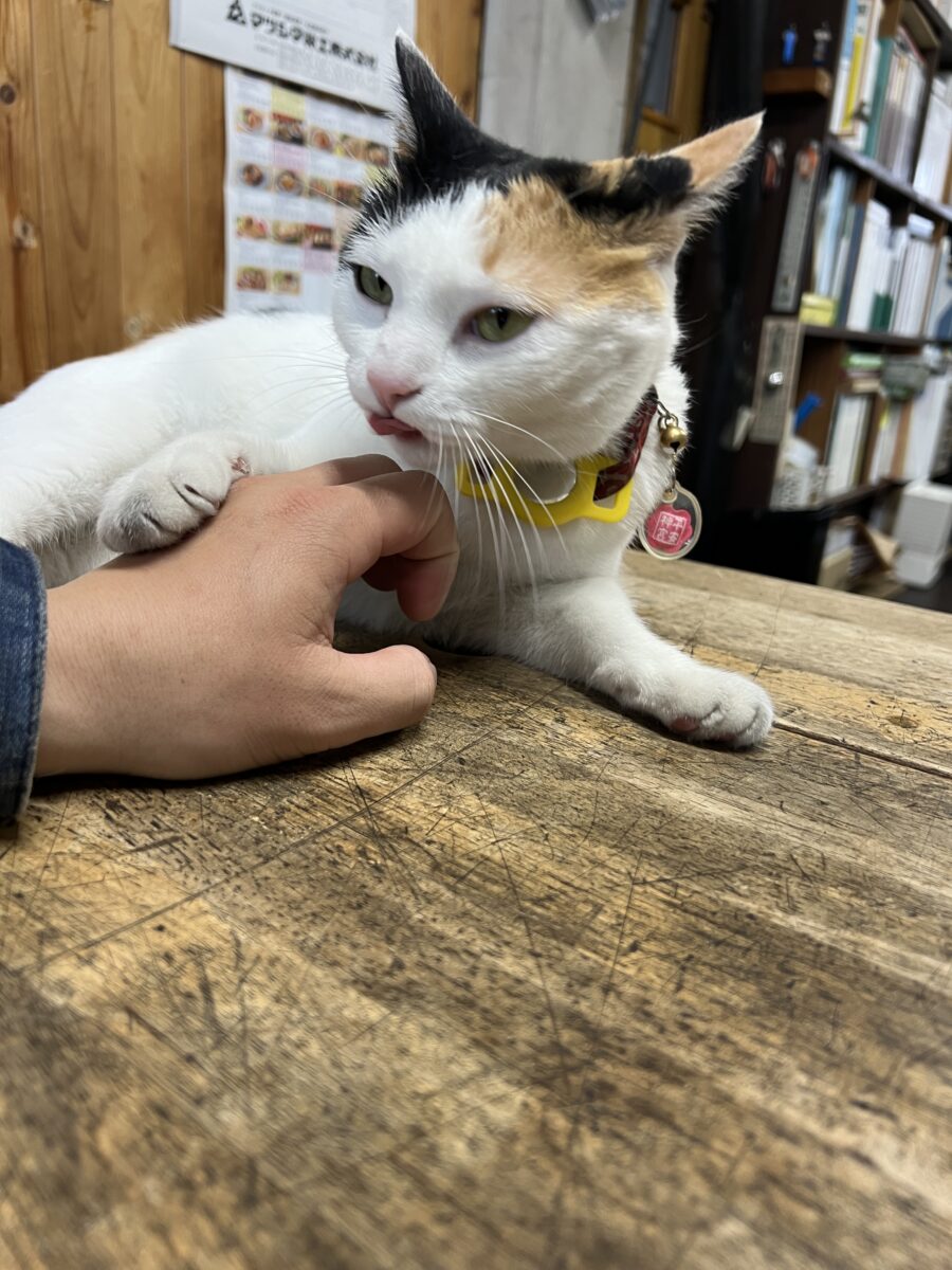 休憩時にテーブルで撫でてあげようと