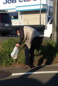 朝の朝礼後に、男性スタッフさん達で会社の回りの清掃をしています。