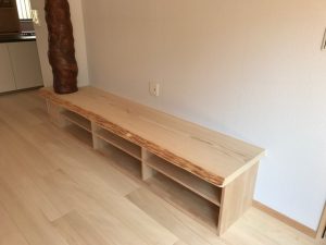 続続 加工屋さん 2017.04.06 木曜です。河内です。 今日から春の交通安全運動が始まりました。 いつもより安全運転で宜しくお願いします。 先日からの加工材のその後です。 モミ テレビボードです。 モミ 洗面台です。 飾り棚です。 飾り棚は集成材のみの納材です。 下から昇ってきているサルスベリは、もともと和室に使っていた材です。 なかなか面白いですネ それでは今週も、セ~フティ~ドライブで張り切って行きましょう