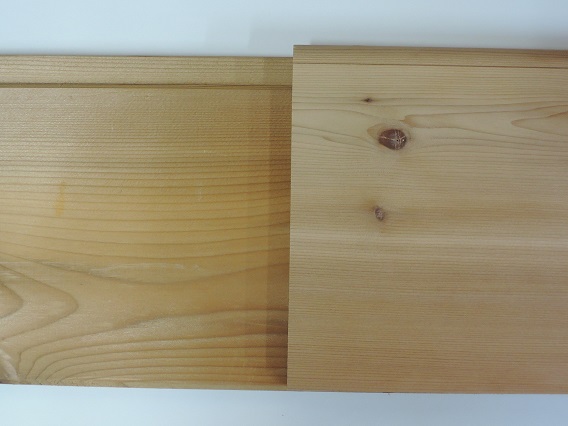 今日のサンプル レッドシダー経年変化 2018.03.10 木材のこと サンプル担当より、エンドユーザーの皆様が疑問に思っているだろう木材の用語や特徴などを 少しでも理解して、木材に親しんでもらえたらな~ というわけで、今回は 米杉 レッドシダー についてのお話をさせてもらいます 写真右は新しいもの 左は15年くらい壁に貼っていたものです 少し濃くなってますね 渋みが出たって感じでしょうか 落ち着いたいい色です