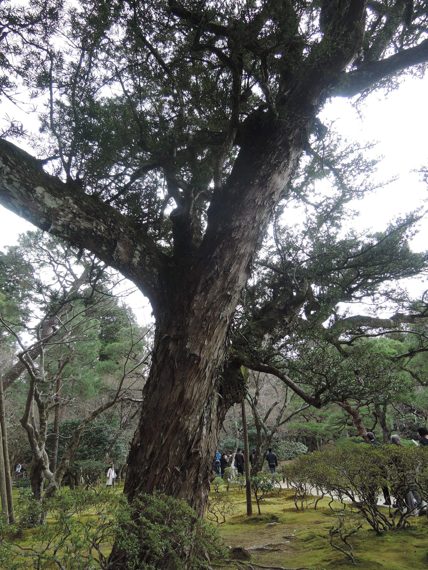 槙の大木 2018.03.19 スタッフ日誌 木材のこと 銀閣寺に行ってきました 椿は散って、桜はまだなので華やかさはありませんでしたが 馬酔木が咲いて、物静かな景色を楽しむことができました 庭園の中にはこんな樹もありました 写真は樹齢800年の槙です どっしりした風格です 商品の槙の羽目板を見るたびに思い出しそうです