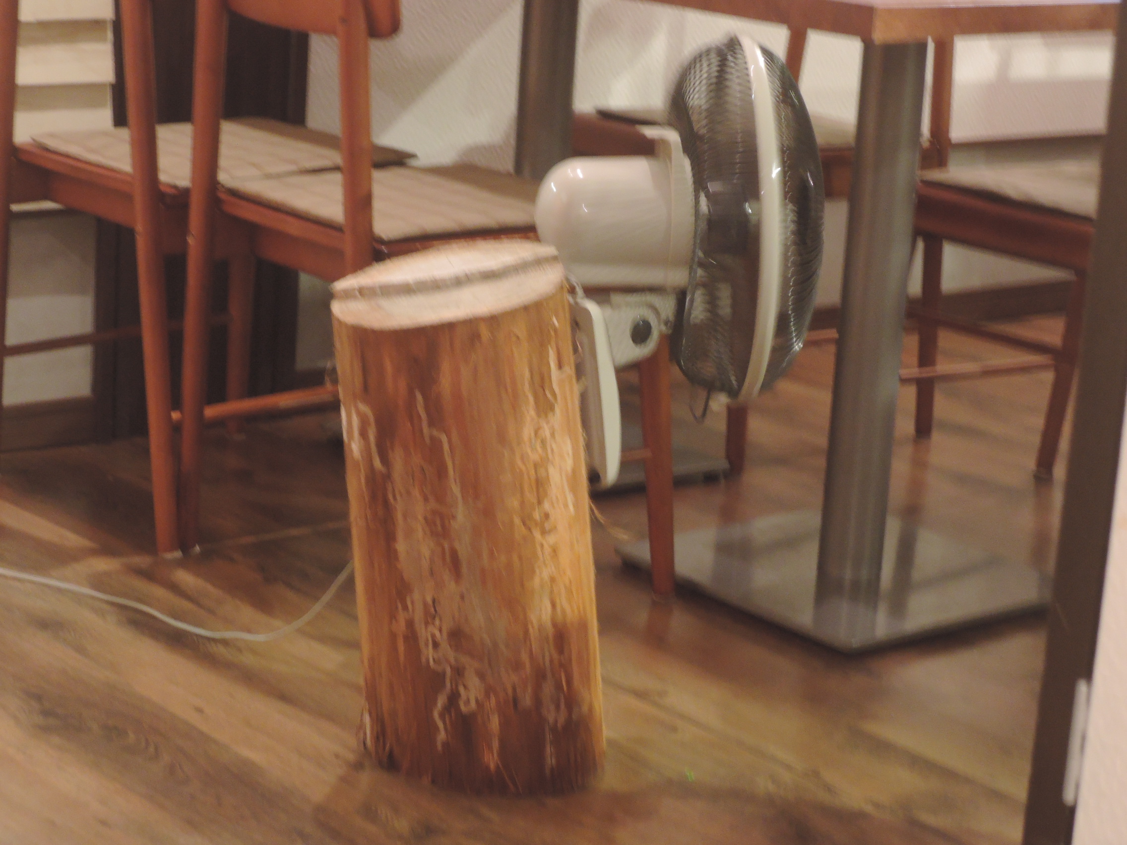 丸太と扇風機 2018.08.27 スタッフ日誌 レストランでのこと かわったものを発見 それまで天井近くの壁につけていた扇風機を下で使用するため丸太につけたそうです 普通の扇風機でも床には置けますが、なんかおもしろいですね 松井山手 restaurant hatanaka おいしいですよ~