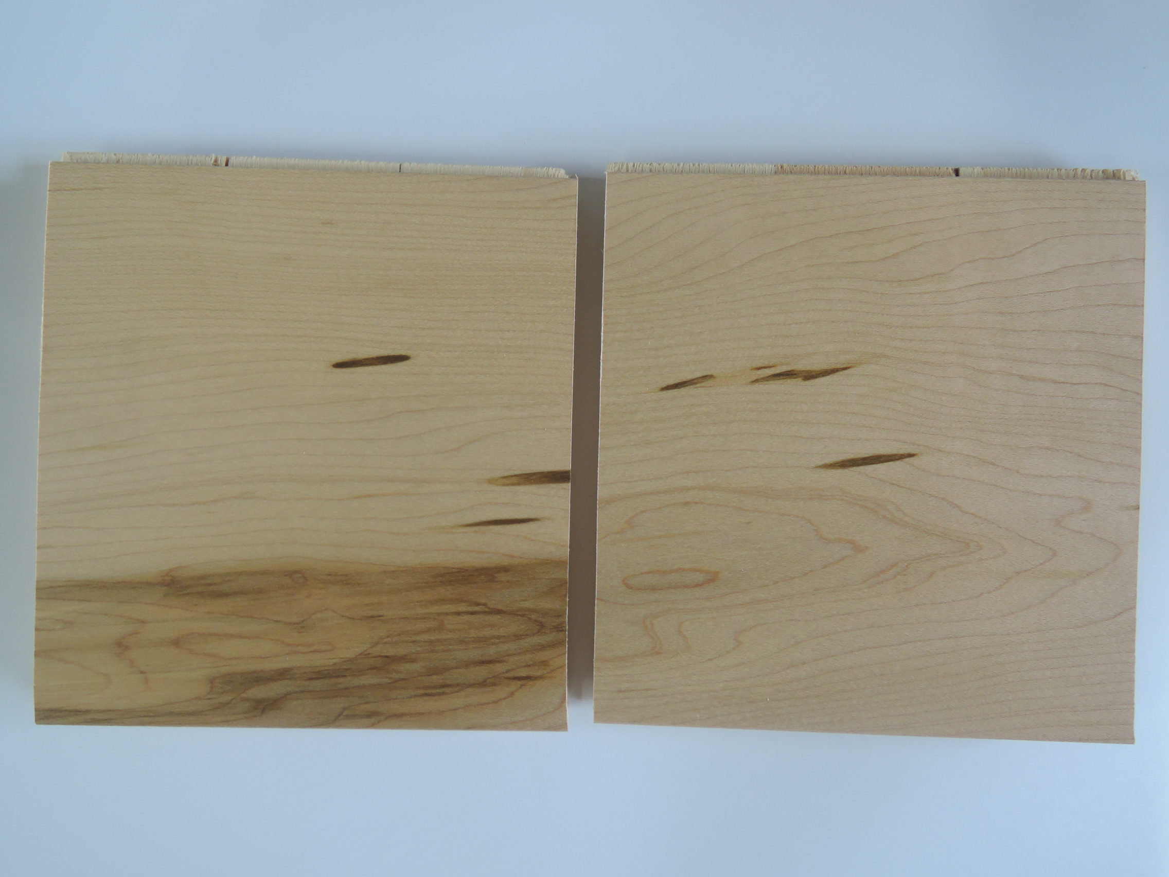 今日のサンプル 挽き板フローリング メープル 2018.09.08 木材のこと サンプル担当より、エンドユーザーの皆様が疑問に思っているだろう木材の用語や特徴などを 少しでも理解して、木材に親しんでもらえたらな~ というわけで今日は 挽き板フローリング ハードメープル を紹介いたします 写真はどちらも節ありの一部です いわゆる節という丸いぐりぐりは目立たず、 メープル独特の入り皮という黒い筋があったり、 ベタ塗りしたような色の全く違う部分があります 板によってはベタ塗りがないのもありますが、 お部屋全面ではあちこちが色違いになります ラフな感じが人気です