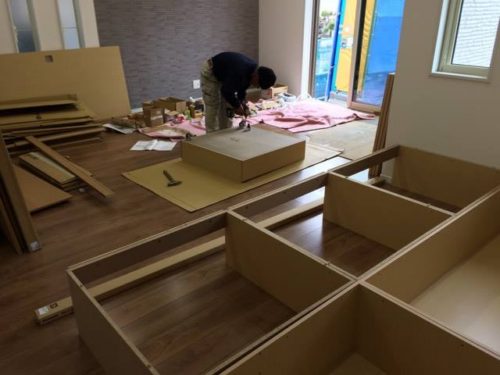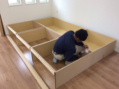 設置する位置を決めたら枠を床に固定し組んで行きます。