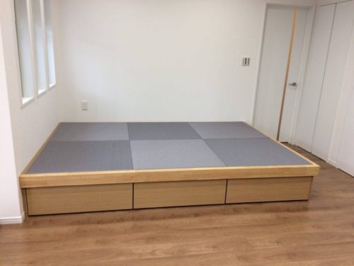 畳スペースを大工さんに造り付けでつくって頂いた事もありますが、パナソニックの建材にスマートに納まる商品があります。