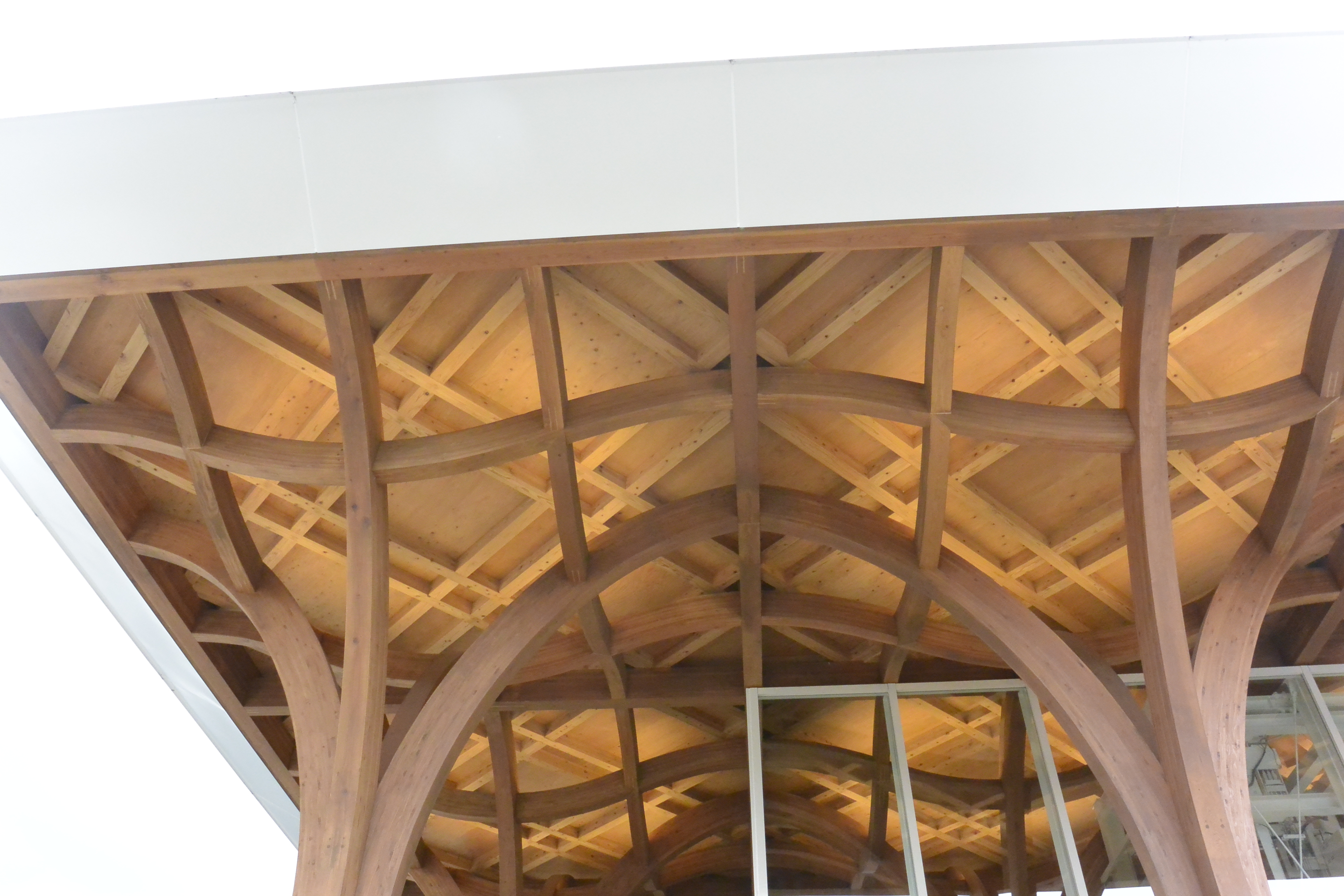湯布院インフォメーションセンター 2019.05.13 スタッフ日誌 嫁さんが湯布院に行きました 写真は湯布院インフォメーションセンターです 全体は人が写りこんでいるので屋根だけのご紹介です 集製材をうねうねさせて見ごたえありです 室内はもっとすごいようで 温泉もいいですが、行かれた際は建物も見ていただきたいです