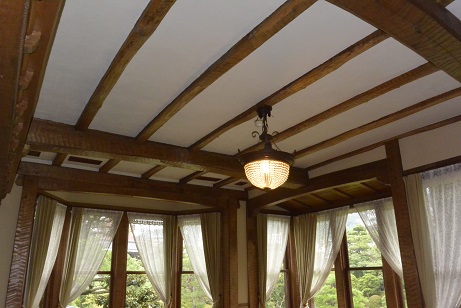 今日のサンプル 六角棒なぐり 2019.07.13 木材のこと 注意:こちらはサンプルのお送りは有料になります 六角形の栗の棒に斜めの模様がなぐり加工してあります 間仕切りの棒にしたり、棚の柱として使用するのが一般的かな? なぐりといえば、こんな建物があります こちら起雲閣(熱海市)のサンルームです 六角棒はありませんが 柱やヌキ、建具枠、ドア 木材の表面は全てなぐり加工がされていました 100年という年月でつるんとして、ずいぶん滑らかになっています