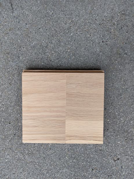 今日のサンプル ホワイトオーク 2019.12.21 木材のこと サンプル担当より、エンドユーザーの皆様が疑問に思っているだろう木材の用語や特徴などを 少しでも理解して、木材に親しんでもらえたらな~ というわけで今日は ホワイトオークについて 紹介いたします 画像は 節あり UNI です ホワイトオークの色が全部つまった一枚でしたので、今日のサンプルに認定です ざっくり言うと 赤み 白み 茶み の色です 名前がホワイトだから白いと勘違いされますが 白くないですよ~~~