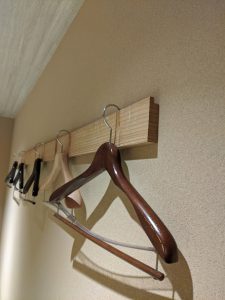 ハンガー掛 2020.01.27 スタッフ日誌 京都リーガロイヤルホテルの更衣室 食事でうかがった際に使用させてもらったら素敵なハンガー掛がありました 溝をつけただけのレッドシダーです 簡素化した長押(なげし)ですね お金をかけずにすっきりした部屋に似合っていました