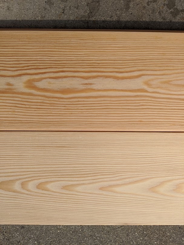 今日のサンプル 唐松 2020.02.01 木材のこと サンプル担当より、エンドユーザーの皆様が疑問に思っているだろう木材の用語や特徴などを 少しでも理解して、木材に親しんでもらえたらな~ というわけで今日は 唐松フローリング について 紹介いたします 板柾込みで、おおよそこのような木目になっています 和室でよく目にする木目ですね 触感はふわりでもなく、つるつるでもないので 馴染みのある踏み心地です 画像は無塗装ですが、自然OILを塗ると光沢が出て 経年変化により赤く(オレンジ色)になります