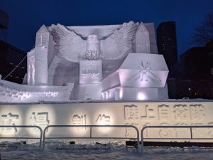 すすきの会場の氷像は夜のライトアップで見るときれいでした