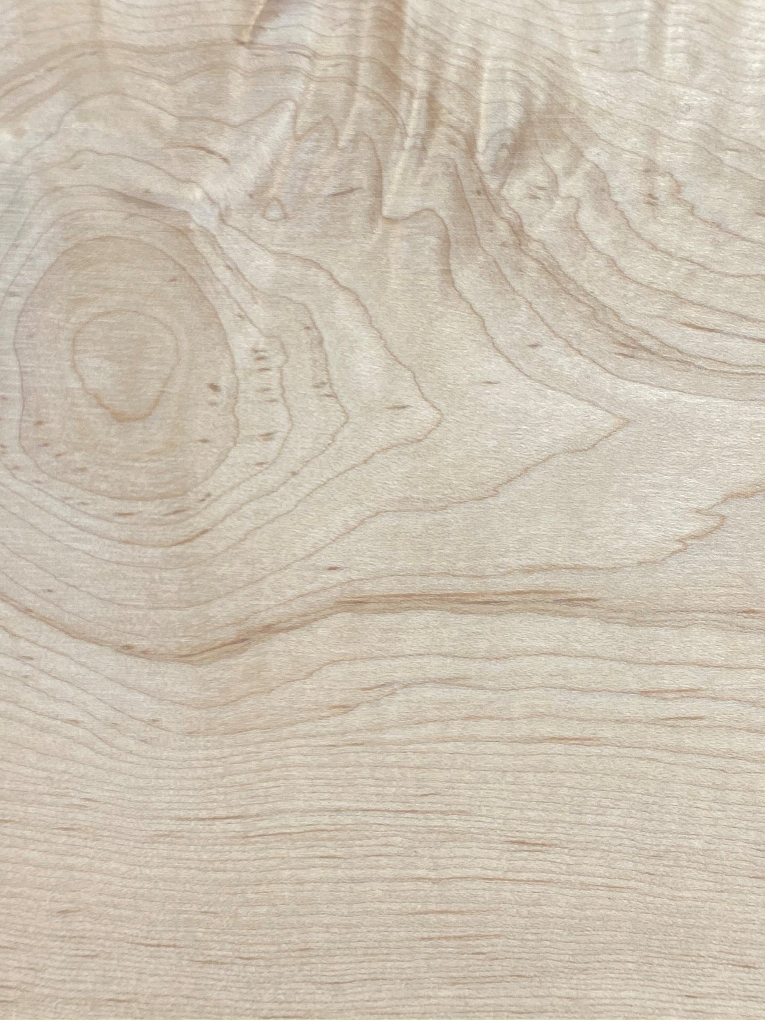 今日のサンプル メープル 2020.05.02 木材のこと サンプル担当より、エンドユーザーの皆様が疑問に思っているだろう木材の用語や特徴などを 少しでも理解して、木材に親しんでもらえたらな~ というわけで今日は メープル について 紹介いたします 表面にてかりのようなものがあるのをお分かりいただけますか 全部ではないですがメープルにある特徴です その形は真上から見た山脈のように見えます 木目も見たことないようなうねりを見せてくれて いつまでも見ていられるのは私だけでしょうか?