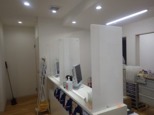 飛沫対策パーテーション設置 2020.07.31 スタッフ日誌 金曜日担当の木下です。おはようございます。 工事を行った薬局も、無事オープンしました。 なんとか、工芸屋さんのご協力もあり、今回作成したカウンター に合わせた飛沫対策パーテーションも開業にあわせて間に合うことが できました。 モニター、レジを置いたりするので、段ボールで試作品を作り いろいろ試した形でできあがりました。 市販の物とは違い、サイズもぴったりです。 他ご用命があれば作成しますので、よろしくお願いします。