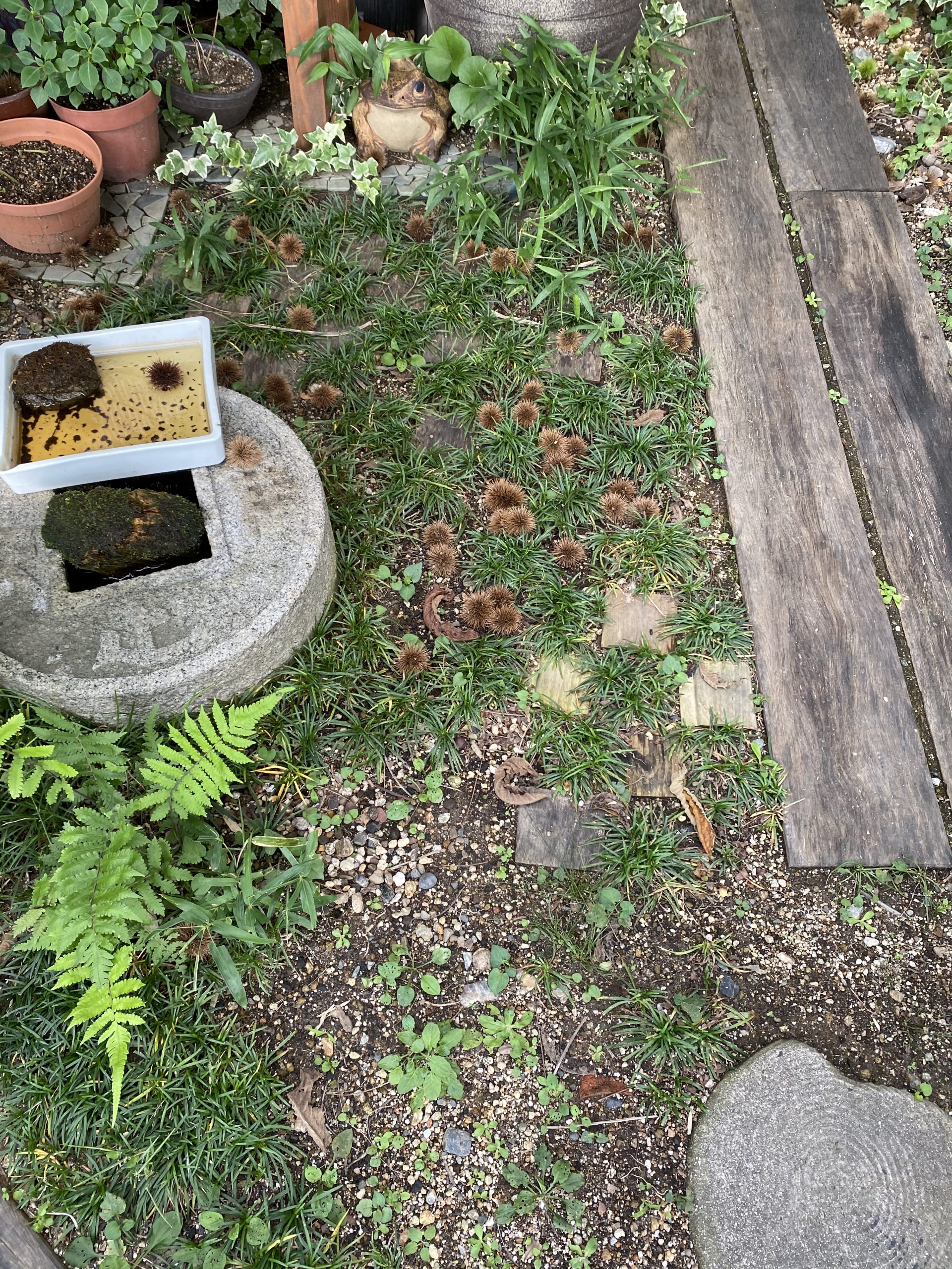 栗の実 2020.07.27 スタッフ日誌 せっかく実った栗の実がほとんど落ちてしまいました 調べると栄養不足か受粉してないか、なようです そういえば一度も肥料をあげていません 地植えなので疎かにしていました きちんとあげて来年からはいっぱい収穫したいと思います