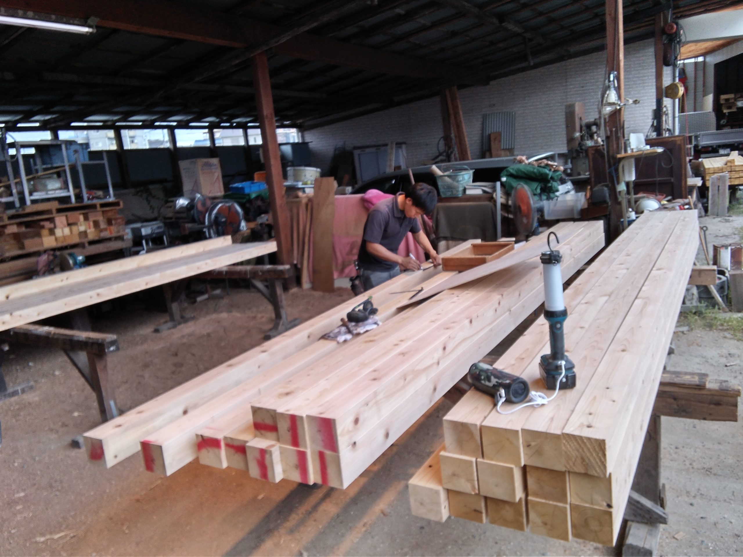 賑やかに鳴っています。 2020.10.08 木材のこと 木曜です。河内です。 今週末の台風の影響でしょうか、気温がグッと下がっています。 雨が降っているので余計に寒く感じます 作業場は少し前に家一軒分の墨付け・キザミ作業が始まっています。 トントン・カンカン・ウィ-ンと賑やかになっています。 僕が入社した約20年前は当たり前の光景でしたが今はナカナカ見れません 画像は土台の墨付け作業です。 この後、梁(胴差し)・桁(小屋)・母屋・柱と順番に墨付けをしていきます。 今から上棟が楽しみです。 それでは今週も張り切って行きましょう