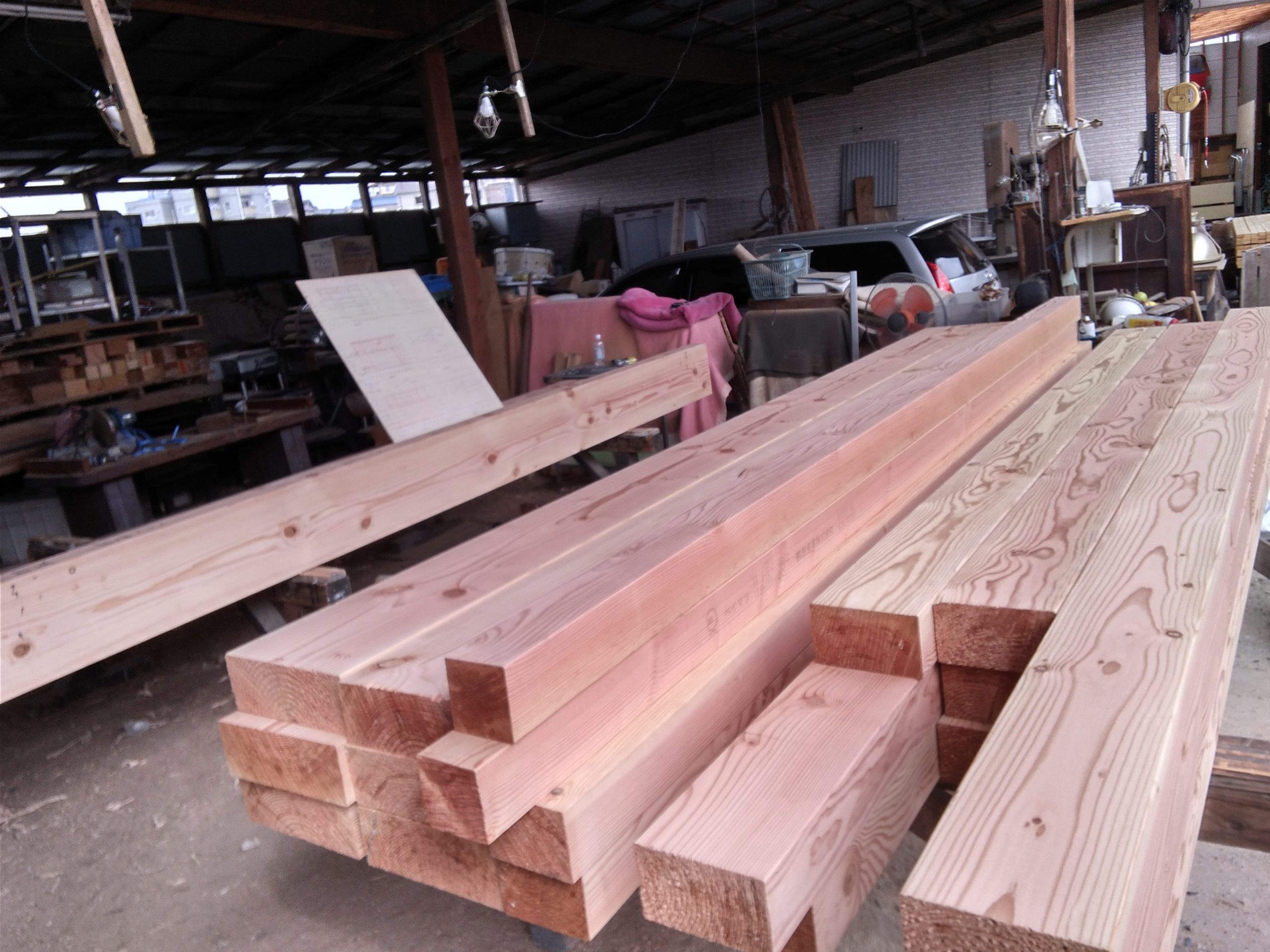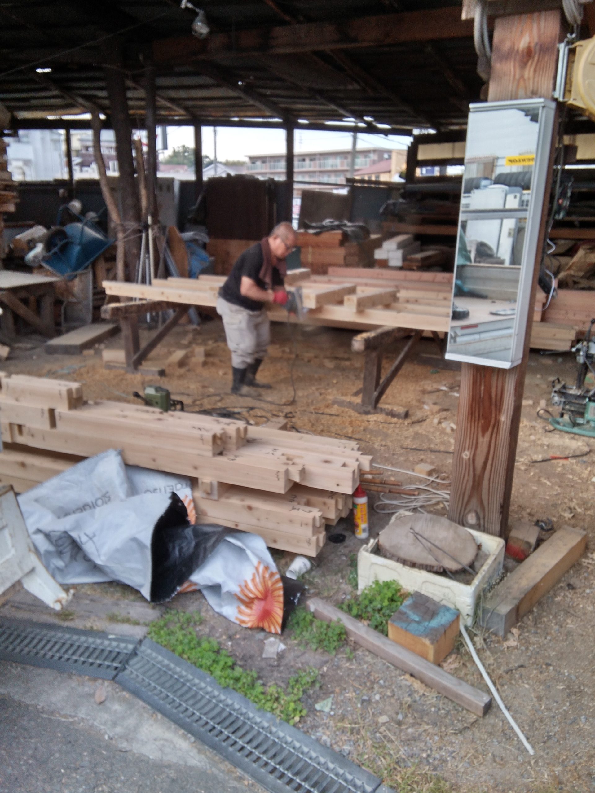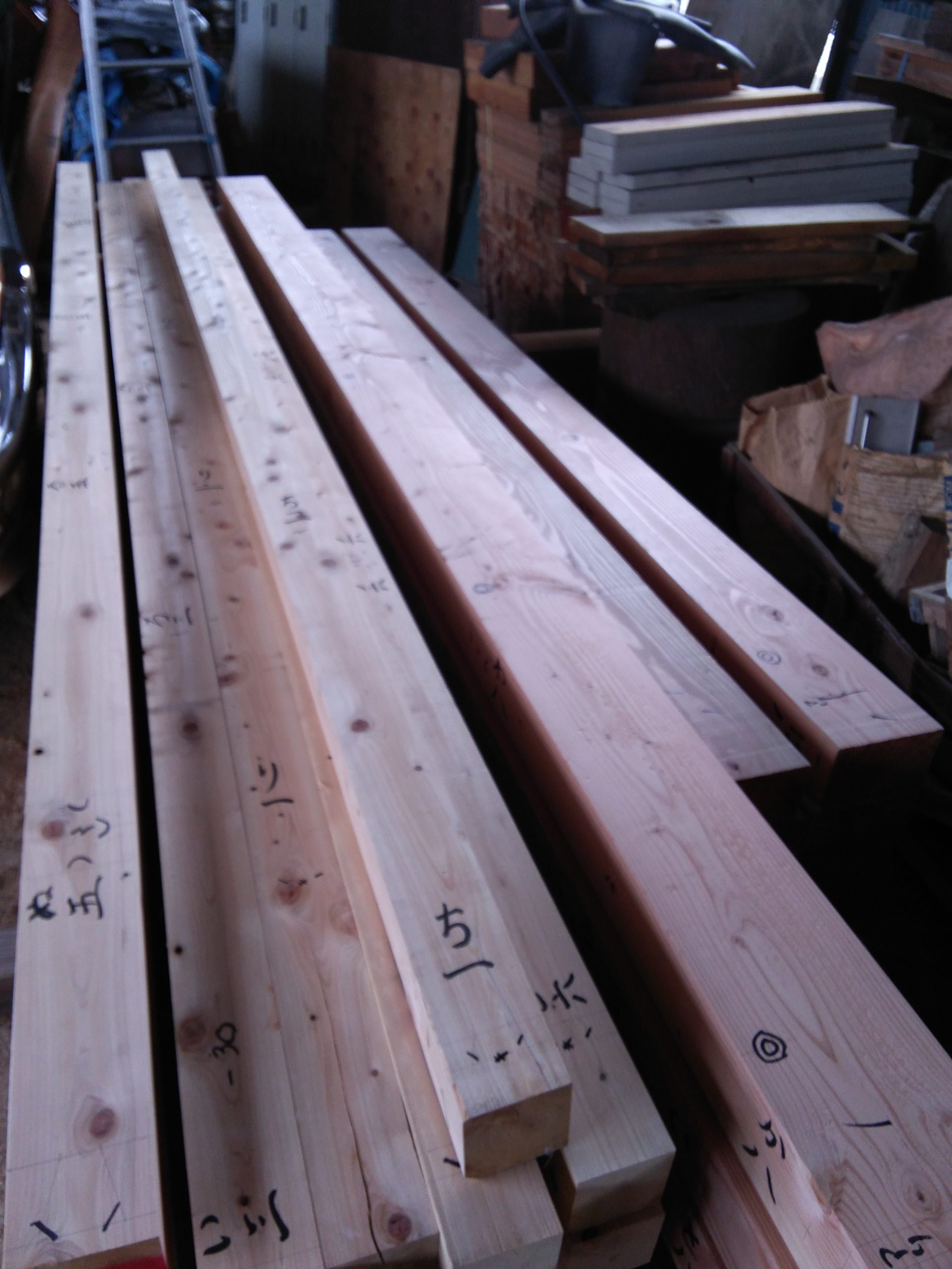 手でキザむ 2020.10.15 木材のこと 木曜です。河内です。 気持ちいい秋晴れですね。 昼ご飯を食べた後は昼寝したら気持ち良さそうですね 朝晩の冷え込みで風邪などひかないように気を付けましょう 画像は先週からの墨付け・キザミ作業です。 胴組の材料の墨付けに入っています。 土台の墨付けが終わりキザミへと進んでいきます。 土台のキザミの画像です。 土台は桧なのでいい匂いが作業場にひろがっています。 日中は汗だくでキザミ作業をしている大工さんです。 キザミはどんどん進んでいきます。 それでは今週も張り切って行きましょう