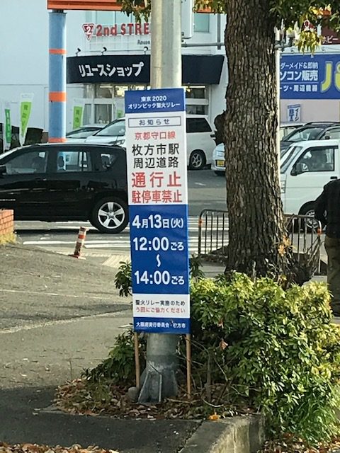 枚方も通過するんですね⁉ 2021.03.25 木曜です。河内です。 桜が満開になっていますね。 入学シーズンのイメージですが10日くらい早いのでしょうか 季節が少しずつ前倒しになってきている様に思います。 画像は枚方の国道一号線 池之宮の交差点にかかっていた看板です。 この前、聖火リレーがスタートしたんですが もう枚方を通るんですね タイミングが合えば見てみたいものです それでは今週も張り切って行きましょう