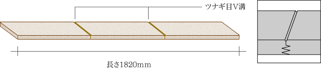 ツナギ目にV溝を入れることにより、まるで一枚物のフローリングを貼ったかのように見せます。さらに高級感を出すため、ツナギ目は2~3ヶ所としています。
