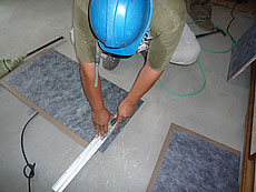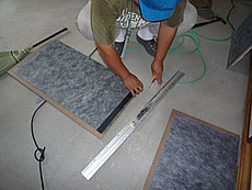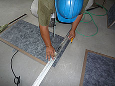 芯材にパーチクルボード(9mm)を使用してますので、レベルの出たスラブ面上にそのまま「防音マットMT0003」を敷き詰めるだけです。
