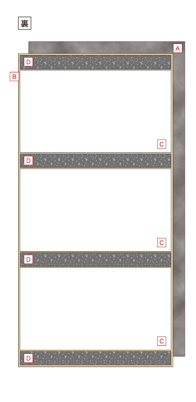 裏面の吸音材(ポリエステル・フェルト)で吸収させ、他に音を分散させる事を防止しています。