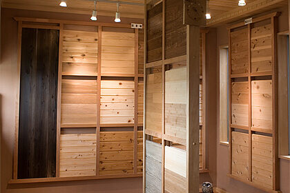 無垢フローリング・無垢羽目板・カウンター材などを実際にご覧いただけるショールームをご用意しております。